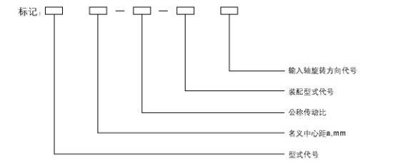 減速器的型號由型式代號,名義中心距a(末級中心距)公稱傳動比裝配型式代號輸入軸旋轉方向代號組成。