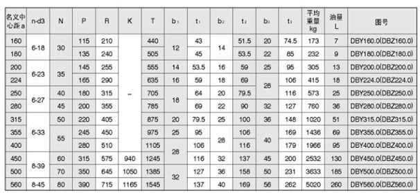 DBY、DBYK、DBZ型減速器各有12種規(guī)格,名義中心距為:160,180,200,224,250,280,315,355,400