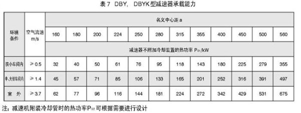 5.2DBY、DBYK型減速器承載能力及熱功率,見表6及表7。