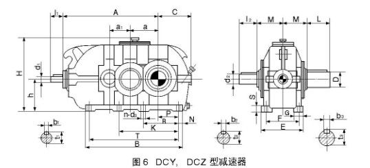 5.3DCY、DCZ型減速器外形尺寸、見圖6,表8。
