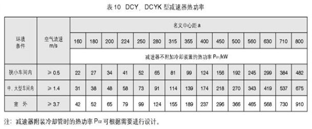 5.4DCY、DCYK型減速器承載能力及熱功率、見表9及表10。