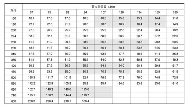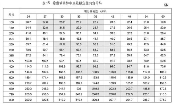 3輸出軸轉數(shù)小于表列最小轉數(shù)時許用徑向載荷按規(guī)格最大值選取。